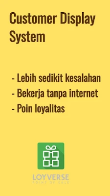 Hadirkan pengalaman transaksi yang revolusioner bagi pelanggan Anda dengan Loyverse CDS. Solusi tampilan digital inovatif ini dirancang khusus untuk menciptakan interaksi yang transparan, efisien, dan memuaskan di setiap titik penjualan, mengubah cara pelanggan Anda berinteraksi dengan bisnis Anda. Loyverse CDS menjadi jembatan informasi yang jelas antara bisnis dan pelanggan, memastikan setiap detail transaksi tersampaikan dengan sempurna.